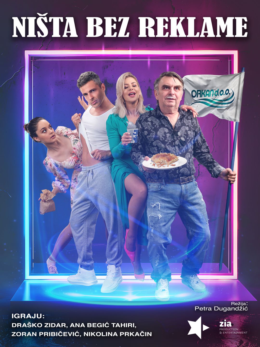 Draško Zidar maestralno glumi direktora agencije Orkana, ljubitelja životinja, posebno janjeta na ražnju. Njegovu najvjerniju obožavateljicu, lijevu i desnu ruku, a najčešće i mozak, Dolly, igra jedna od hrvatskih najboljih komičarki Ana Begić Tahiri. Nina je moralna vertikala svoje generacije, borac za ljudska prava i političku korektnost, a igra je izvrsna Iskra Jirsak. Poznato lice s malih ekrana, Zoran Pribičević, igra Peru Žlahtinu – glumca kojeg je angažirala agencija, ugodnog oku, ali ne i uhu, zaljubljenog u sebe i svoje nule na računu.