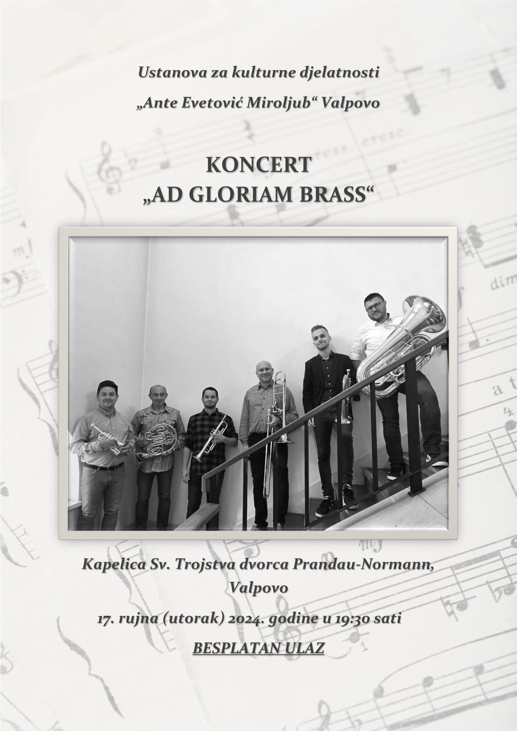 AD GLORIAM BRASS ansambl: Mario Lončar, Luka Buljan i Peter Firšt – trube:, Srđan Peić-rog, Mario Šincek-trombon, Ivica Geček-tuba